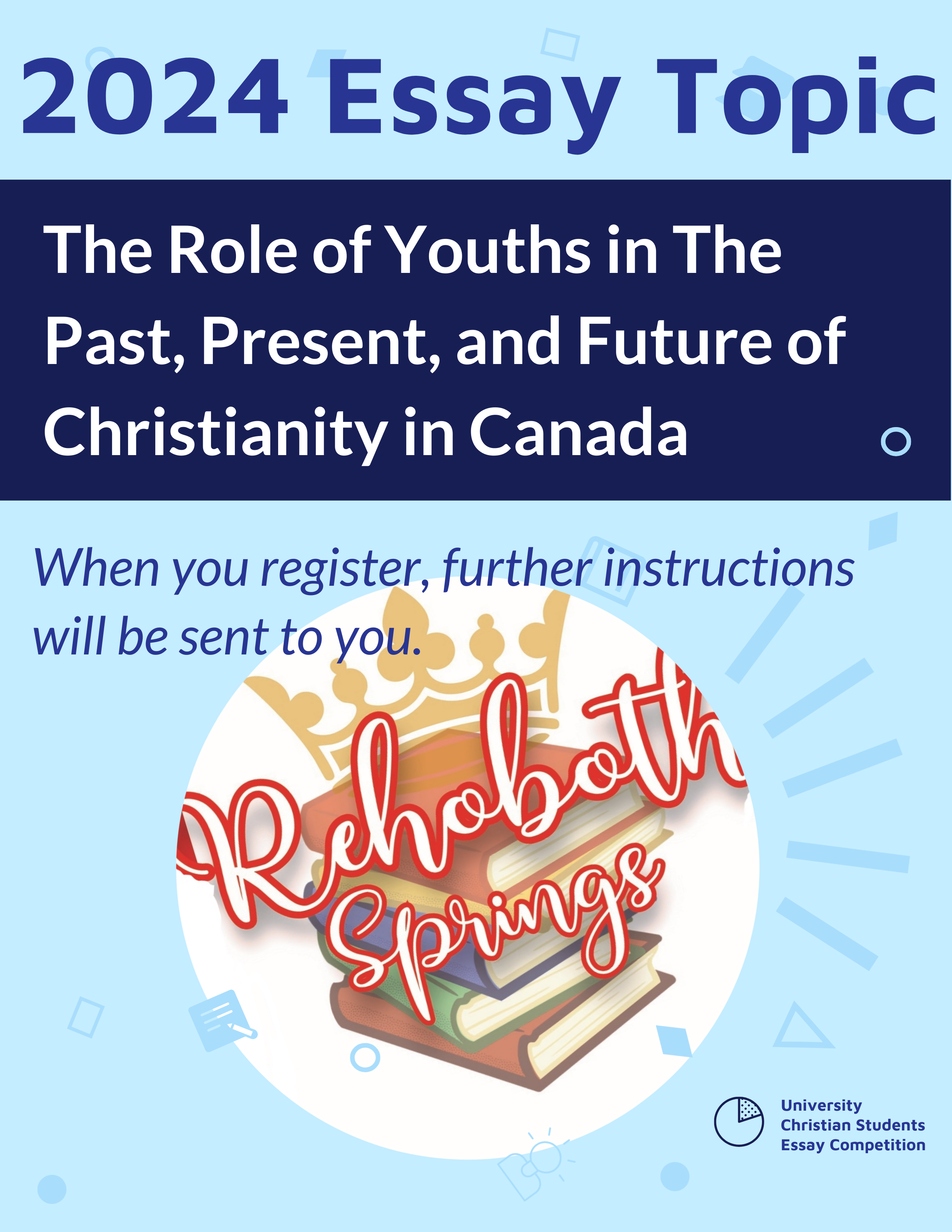 The University Christian Students’ Essay Competition is an annual contest hosted by Rehoboth Springs Canada Inc. This competition aims to enable Christian students studying in any Canadian higher institution to reflect on how they could make positive impacts that could translate into expanding God’s kingdom through their vocation and life. Students studying at Canadian colleges, polytechnics, and seminaries are welcome to apply.